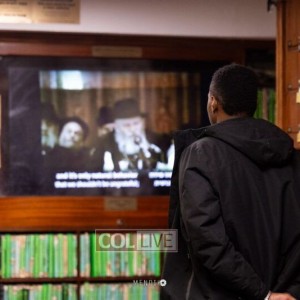 אור לגויים: אפרו-אמריקני מעובדי 'בית חיינו' 770 שבניו יורק, נקלט בעדשת המצלמה כשהוא מרותק וצופה בווידאו של הרבי