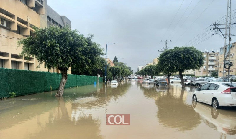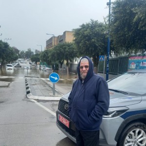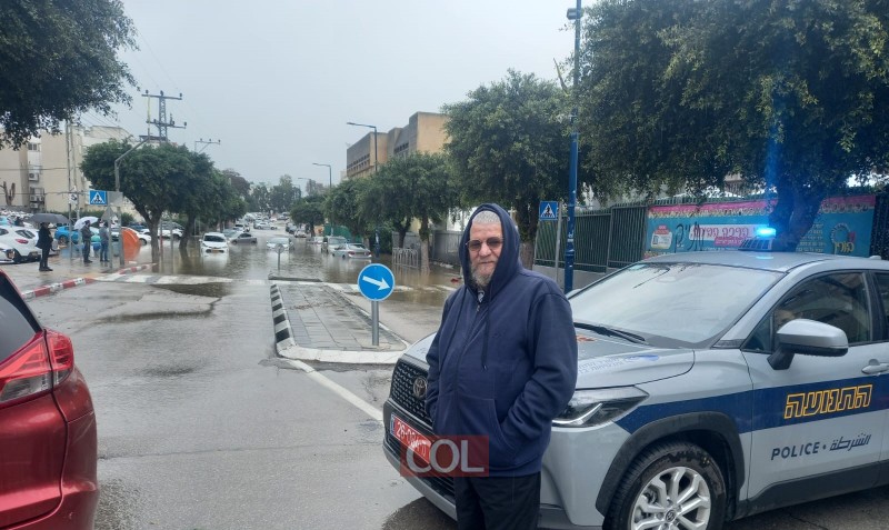 משעות הבוקר המוקדמות: העסקן החב"די ר' חיים שטיינר מקרית מלאכי מסייע לחילוץ מי הגשמים והתושבים, לאחר שרחובות נחלת הר חב"ד התמלאו במים ונחסמו לתנועת כלי-רכב ותושבים