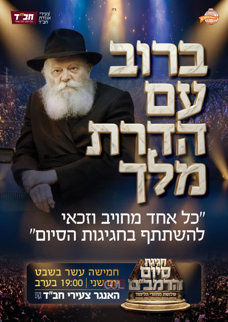 בימים אלו נשלמות ההכנות לאירוע המרכזי של סיום הרמב"ם ה-45 שיתקיים בע"ה ביום הסיום חמישה עשר בשבט תשפ"ו בהאנגר צעירי חב"ד הענק שייבנה במרכז כפר חב"ד | בפנים: הרשמה לאירוע
