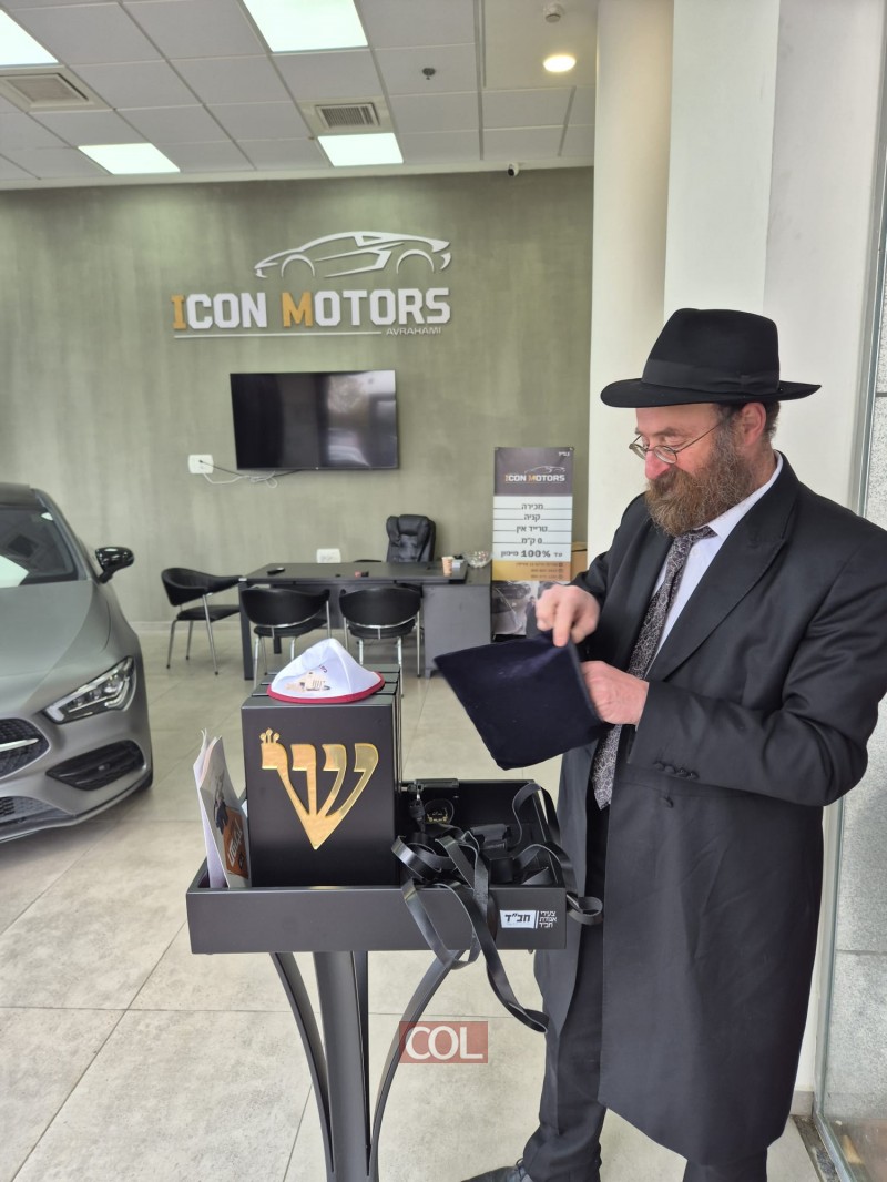 שליח הרבי במודיעין הרב ברוך סלונים, חנך דוכן תפילין חדש ב'אייקון מוטורס' חנות למכירת רכבי יוקרה. במעמד, הבעלים הפשיל שרוול והיה למניח הראשון בדוכן החדש להצלחת העסק