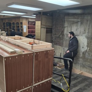 ספריית ספרי מאמרי הרבי המתילוגית, שעמדה במשך עשרות שנים בכניסה לזאל הגדול ב-770, הוחלפה הלילה בספרייה חדשה. כך נראה הקיר המקורי מאחור, מימי ה'שאלאש'
