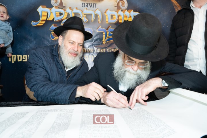 השתתפו בכתיבת האותיות וסעודת המצווה ראש העיר מר יאיר מעיין וכלל רבני העיר מכל הקהילות.