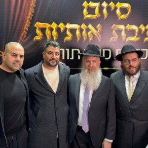 השליח בסביון הרב שמואל ביסטריצקי והזמר משה פרץ בהכנסת ספר תורה של משפחת שמואלי לבית כנסת חב"ד בשכונת היובל מקוב ברחובות