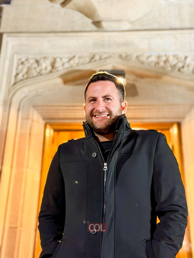 הקומיקאי הישראלי גיא הוכמן השוהה בניו יורק הגיע הלילה לביקור ב-770. צילום: שמואל בצלאל דהן