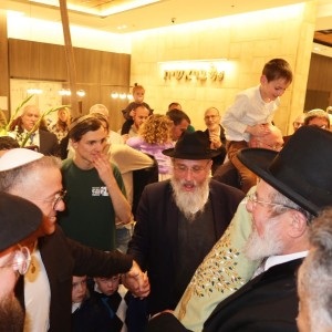 הרב הראשי לישראל - הרב קלמן בר שליט"א ושליח הרבי למוצא ובית זית - הרב ראובן הורביץ, השתתפו ב בחנוכת בית הכנסת והכנסת ספר תורה בדיור מוגן 'בראשית' בהרי ירושלים (צילום: שרה דוידוביץ)