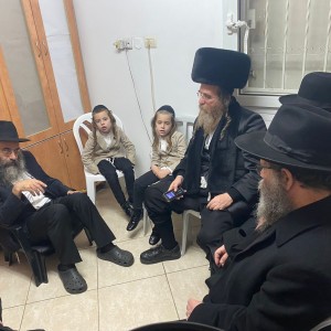 רבו של כפר חב"ד וחבר בית-דין רבני חב"ד בארה"ק - הרב מאיר אשכנזי, בניחום אבלים בבית ר' פיני שנור, היושב 'שבעה' אחר פטירת אביו, ברחוב האדמו"ר מליובאוויטש 12, ירושלים