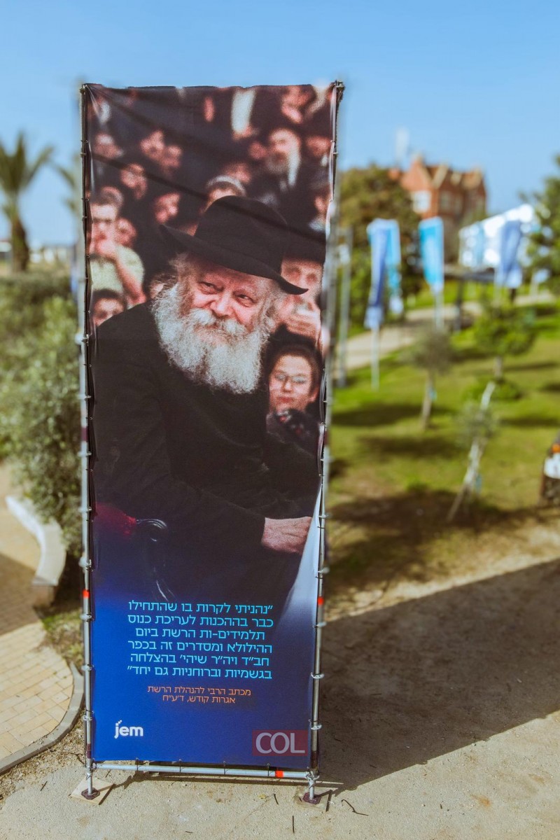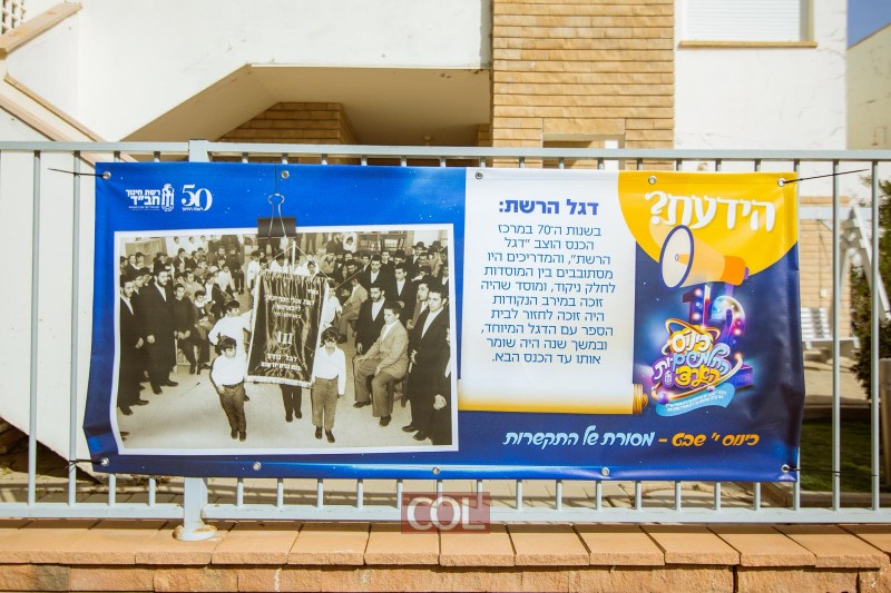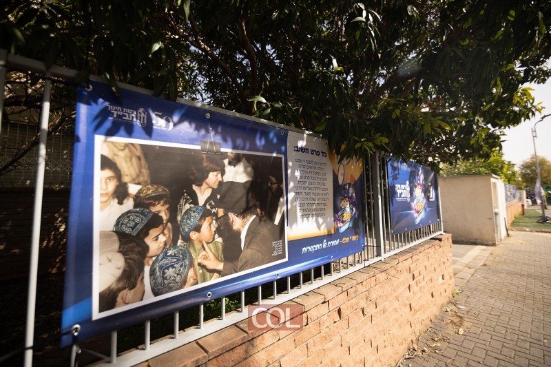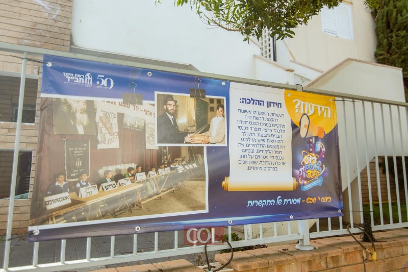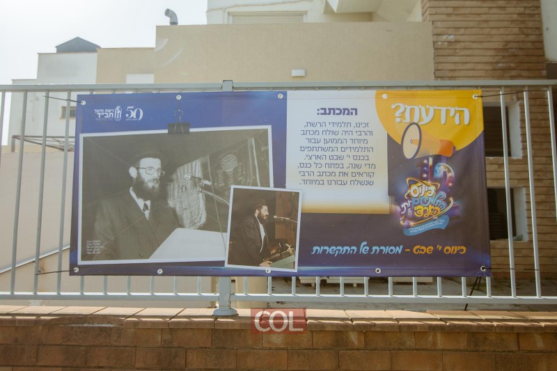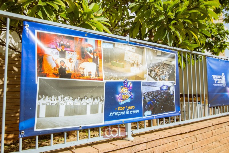 רחבת 770 כוסתה בשלטים חגיגיים, הקשורים להיסטוריית ה'רשת', ובראשם ציטוטים נבחרים של הרבי נשיא דורנו לרשת החינוך החב"דית.