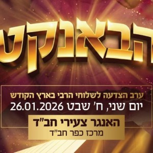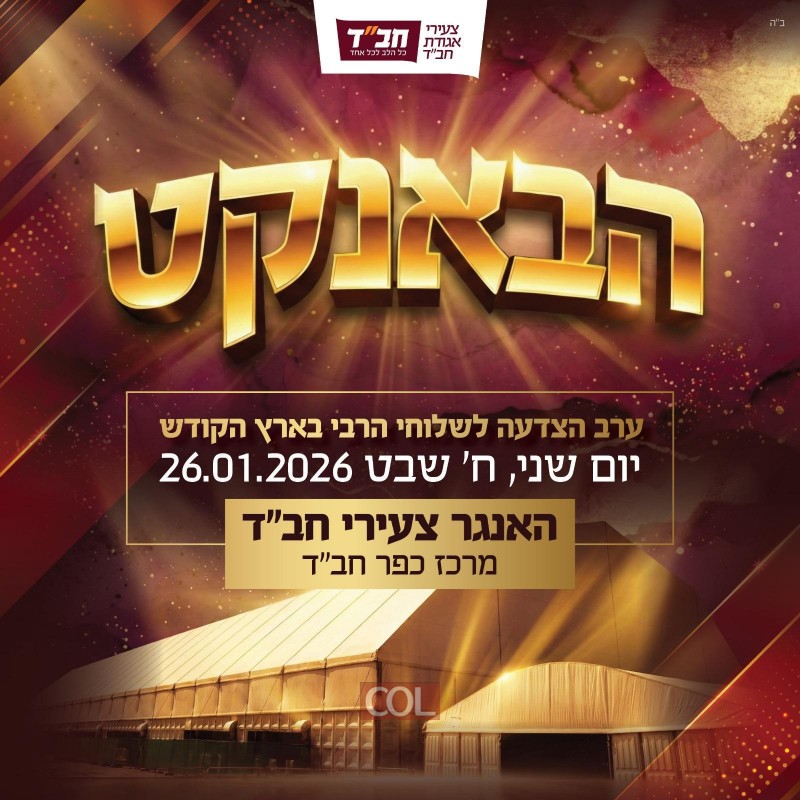 לראשונה בכפר חב"ד, בהאנגר גדול שנבנה במרכז הכפר, יתקיים מעמד ה"באנקעט" - ערב ההצדעה לשלוחים ולשלוחות בארץ הקודש שמארגן צעירי אגודת חב"ד | בהפקה עמלים עם המשטרה על ההיערכות התחבורתית