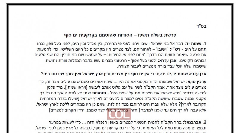 סיפור קריעת ים סוף - עם שלם על ספת הפסיכולוג. שיעורו של הרב שניאור אשכנזי לפרשת בשלח