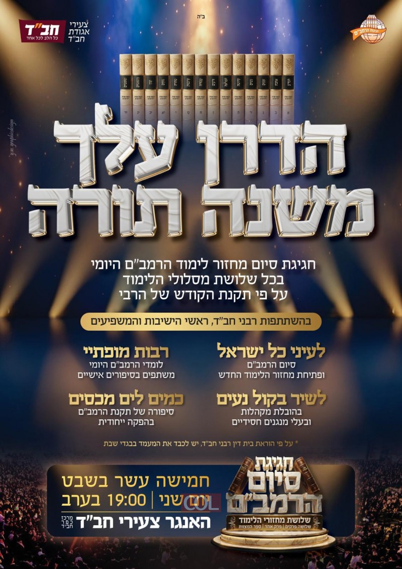 בשבוע הבא ביום שני יתקיים המעמד המרכזי של סיום הרמב"ם בכפר חב"ד: ההכנות בעיצומן ובמטה הרמב"ם שבצאגו"ח עמלים על פרוייקט מיוחד שישולב בתוכנית מרגשת ומקורית שכותרתה "ומלאה הארץ דעה"