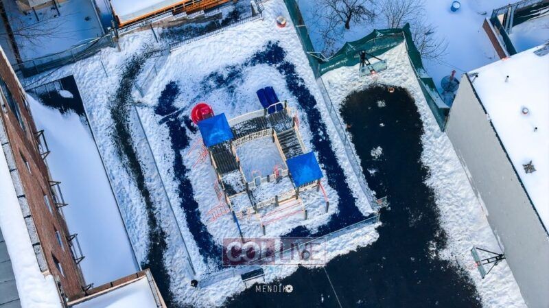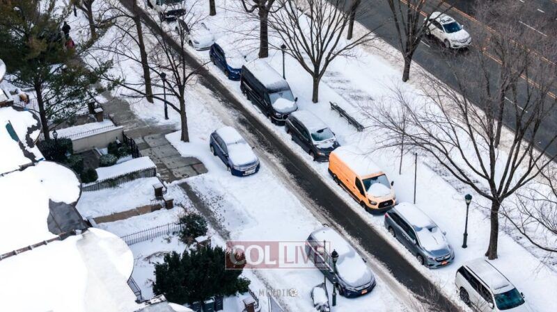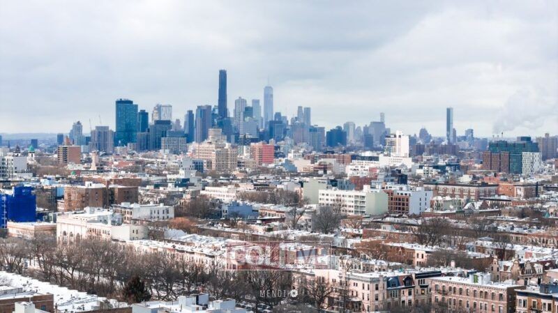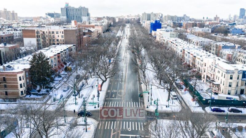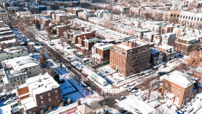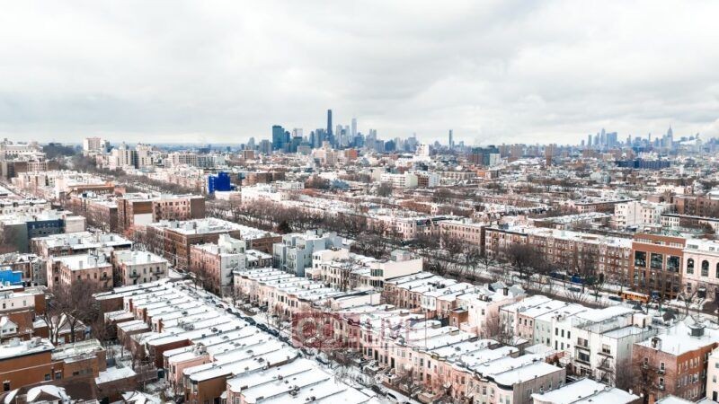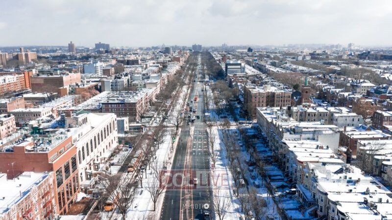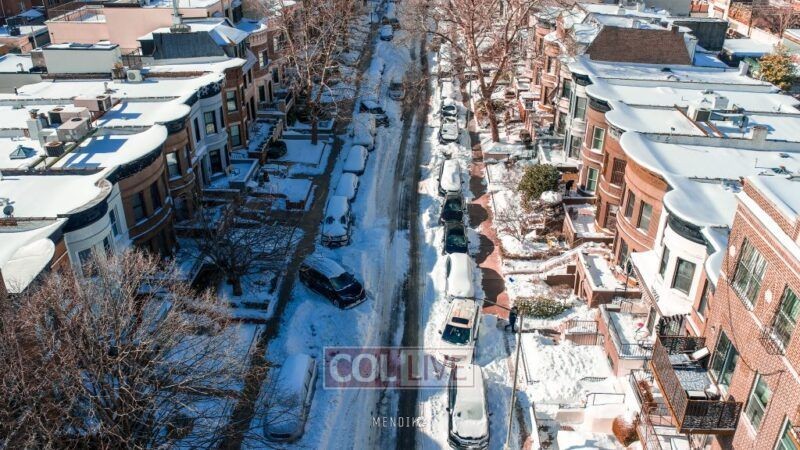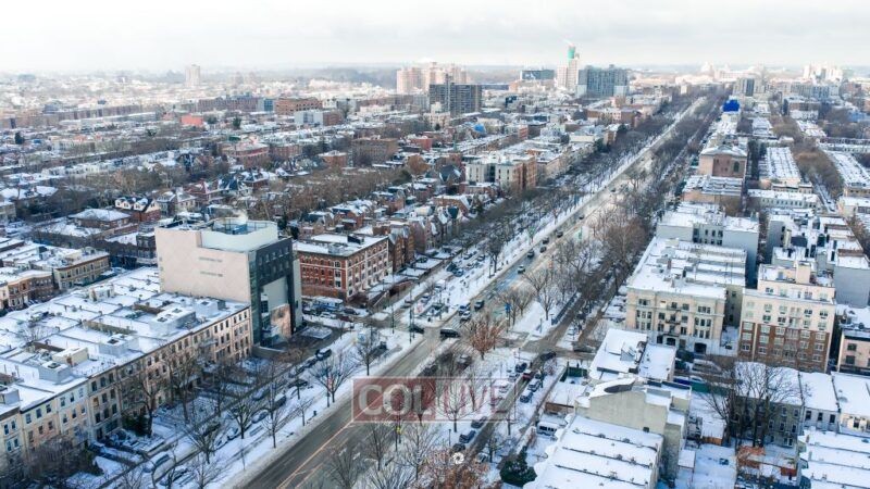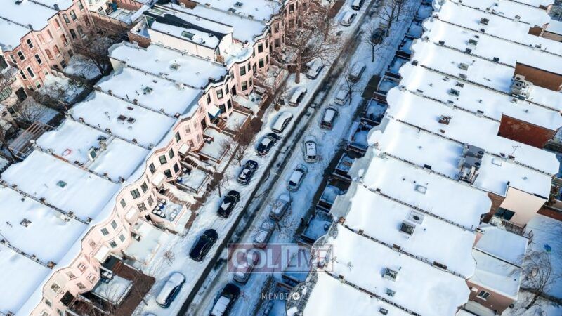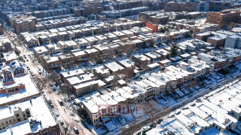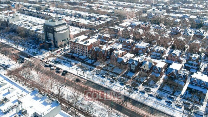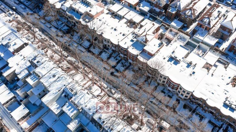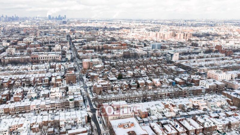 אמריקה בלבן: שכונת קראון הייטס מושלגת • תיעוד מהאוויר