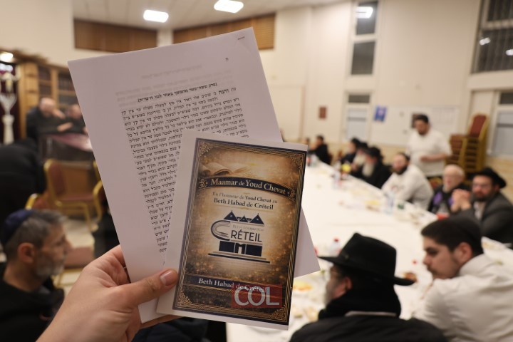 התוועדות גדולה ומרכזית ליום הגדול והקדוש יו"ד שבט התקיימה בבית חב"ד בקרטייל שבצרפת, בהשתתפות השליח הרב חיים מלול ובנו הרב שרולי מלול, ובהשתתפות הרב שמואל לבקובסקי מהישיבה בברינואה הסמוכה | צילומים: מרדכי לובעצקי