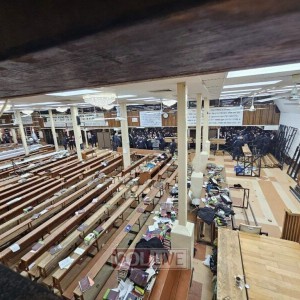 ריק מאדם: האולם של בית הכנסת המרכזי ריק מאדם לאחר שפונה ע"י משטרת ניו יורק, דקות לאחר ניסיון הדריסה של האלמוני שניסה לפרוץ עם רכבו לזאל הקטן מהכניסה האחורית של 770