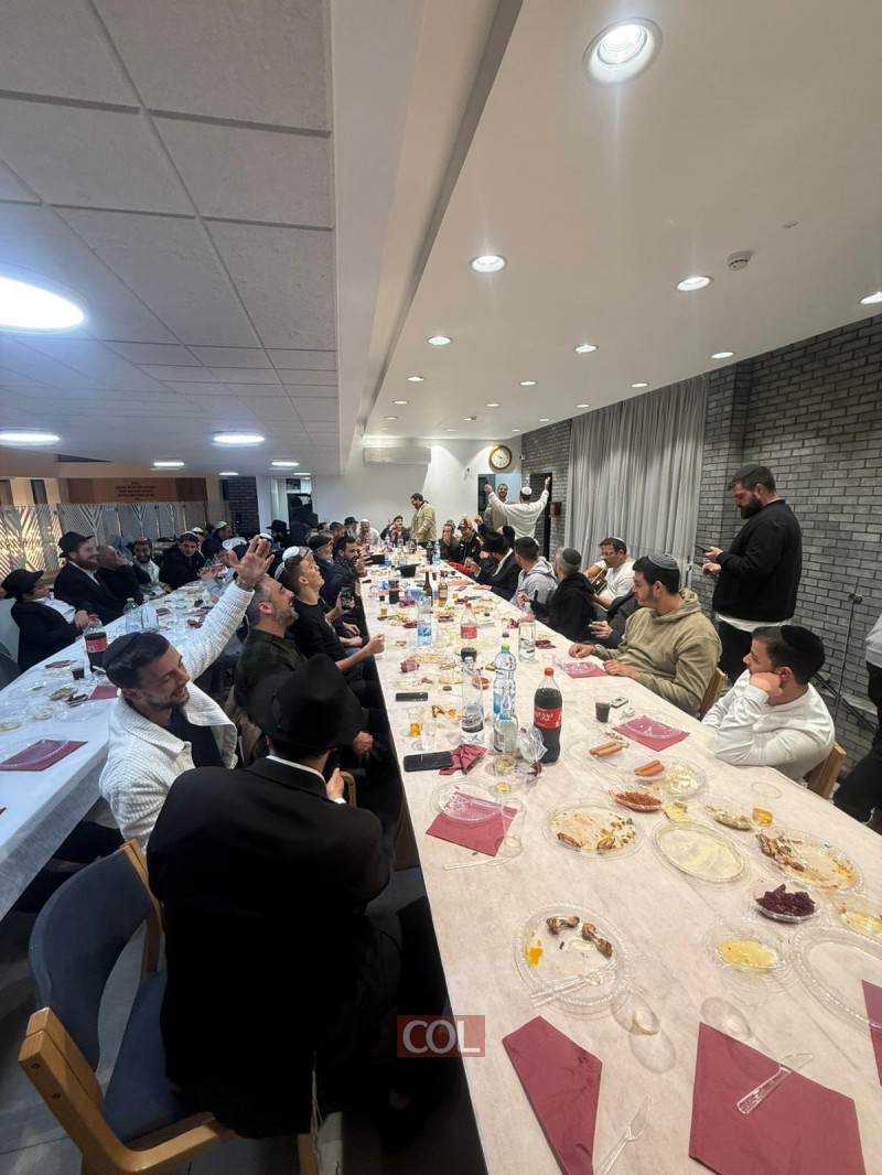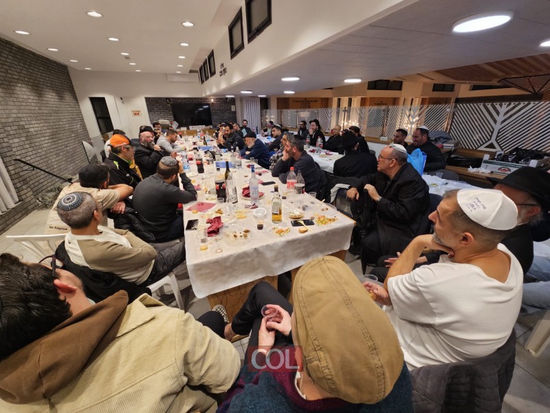התוועדות יו"ד שבט בבית חב"ד ביהוד, סביב שולחן ערוך, עם האורח מאשדוד הבעל מנגן החסידי הרב מנחם מענדל עמאר