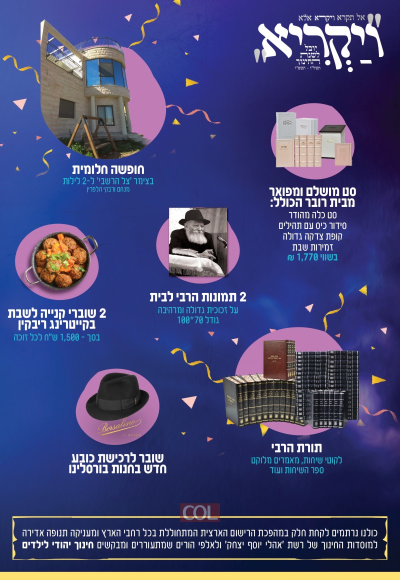 התורמים והשותפים זוכים בברכות הקדושות שהרבי הרעיף על התרומים לרשת וגם נכנסים להגרלה על פריטי קודש ופרסים יקרי ערך ועוד שלל מתנות ללא הגרלה.
