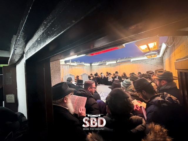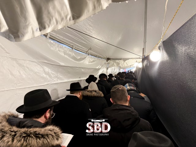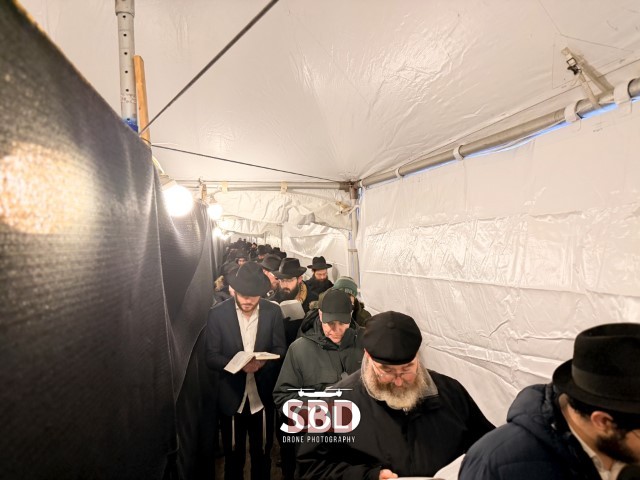 תיעוד מרהיב: המונים ממתינים בשלג להיכנס לאוהל בי' שבט