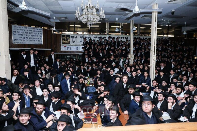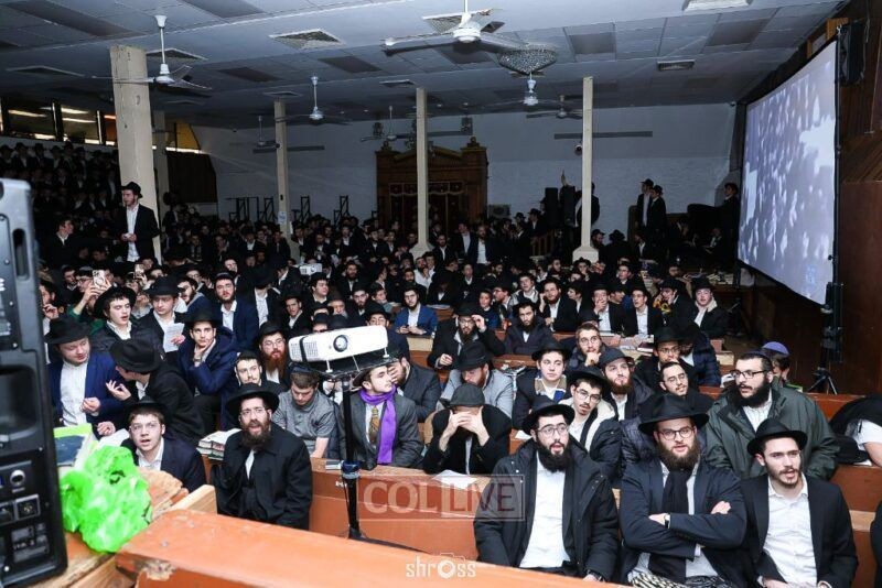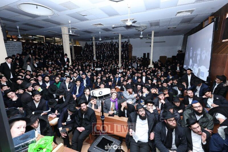 הנס נחשף: זמן קצר לפני ניסיון פיגוע הדריסה המחריד ב-770, התאספו למעלה מ-4,000 בחורים מ-56 ישיבות ברחבי העולם, לצפייה בווידאו "שעה עם הרבי" (צילום: שלום ראס)