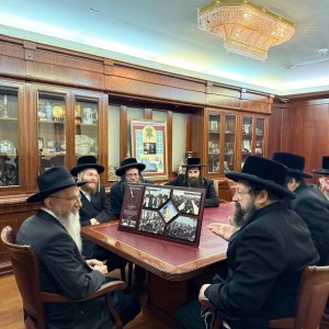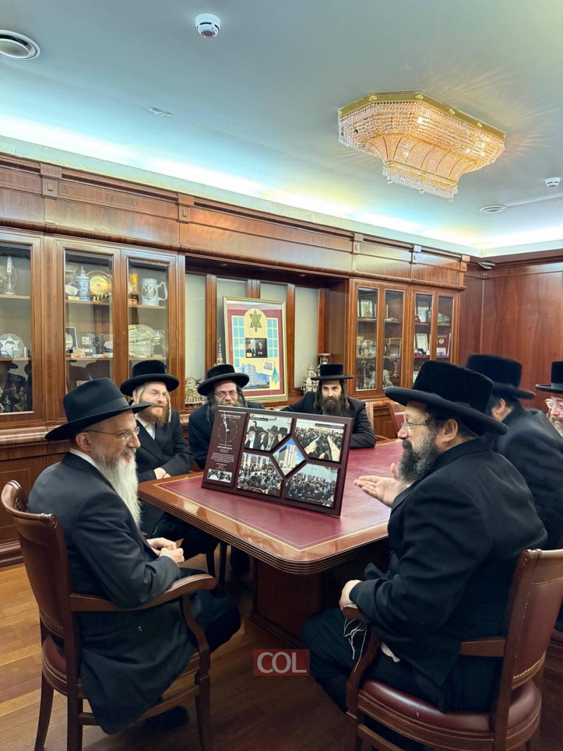 רבני ומנהלי מוסדות 'מעייני ישראל' וישיבת 'המאור שבתורה' מארץ-ישראל, העניקו שי הוקרה לרבה של רוסיה - השליח הרב בערל לאזאר, על תמיכתו ועידודו במוסדות הפרוסים בארה"ק