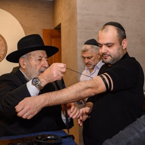 מבצע תפילין לפני המעמד: הקהילה היהודית בעיר קיסלובודסק שברוסיה, חגגה בהכנסת ספר תורה לבית הכנסת המחודש, יחד עם שליח הרבי ורב העיר, הרב עקיבא חודינטוב