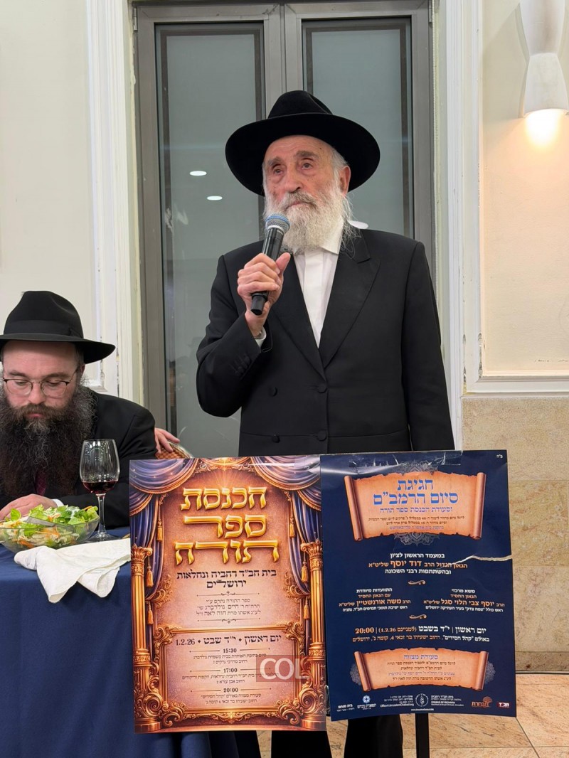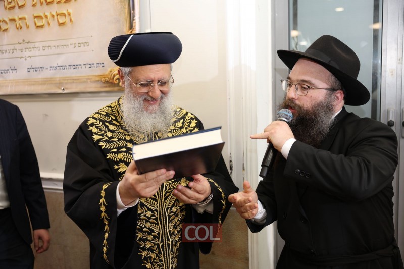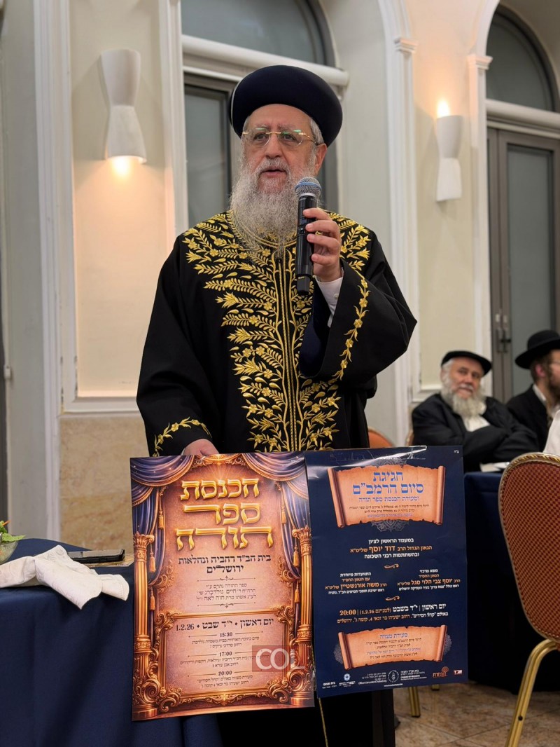 הראשון לציון הגאון הגדול הרב דוד יוסף שליט"א, שבירך את הקהל ועמד על חשיבות הלימוד היומי בספר הרמב"ם, וחשיבות הפצת המעיינות מתוך אהבה ומאור פנים, כפי שרק בחב"ד יודעים לעשות.