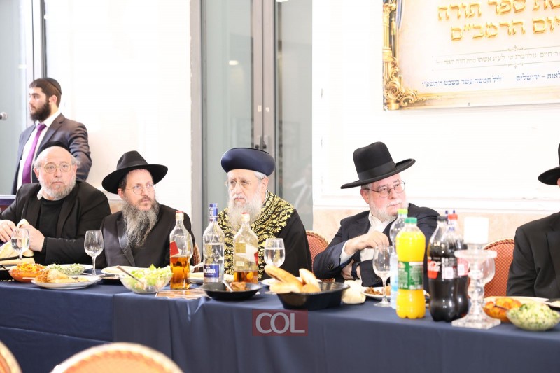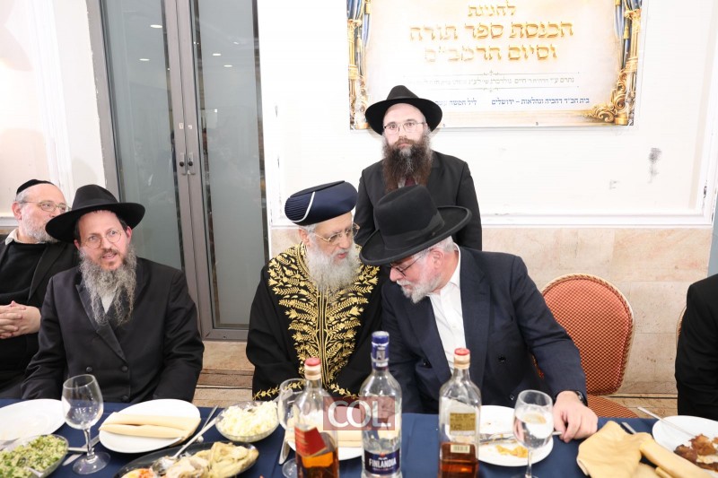 לאחר הכנסת ספר התורה להיכל, הסבו המשתתפים לסעודת מצווה מפוארת סביב שולחנות ערוכים בטוב טעם, במהלכה נערך גם סיום הרמב"ם.