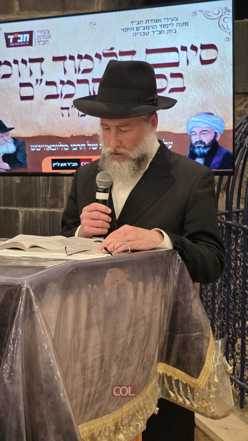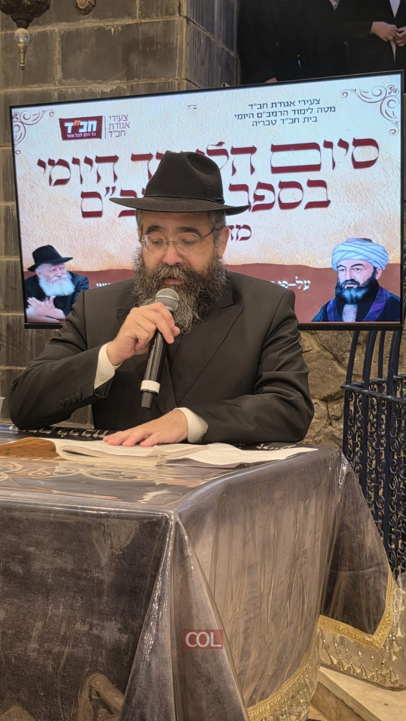 מרכז התקשורת החב"די COL מעביר כעת, שידור ישיר מהמעמד העולמי של סיום המחזור ה-45 בלימוד הרמב"ם, שיתקיים ליד ציון הרמב"ם בעיה"ק טבריה, בהשתתפות גדולי התורה והחסידות
