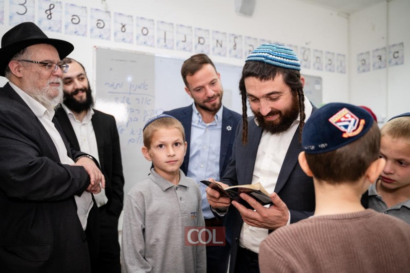 רגע מרגש נרשם בכניסה למשרד המנהל, כאשר צעיר התלמידים מכיתה א' התלמיד ארי פוגאטש שי' קיבל את פני הח"כ והקריא בפניו את ברכת התלמידים בשם הכיתה והת"ת, תוך שהוא מעביר מסר בהיר וקולע מהרבי לאישי ציבור שזכו לשליחות חשובה כמוהו ולסיום העניק לו ערכת צביעה ייחודית עם ברכות שהכינו התלמידים עבורו בהנחיית מורם המסור הרב ראובן לויאשוילי.
