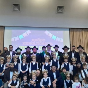 בוקר מרגש: עשרות תלמידי כיתה א' ב"חדר מנחם" במוסקבה בירתה של רוסיה ואבותיהם, בטקס השנתי של מסיבת החומש