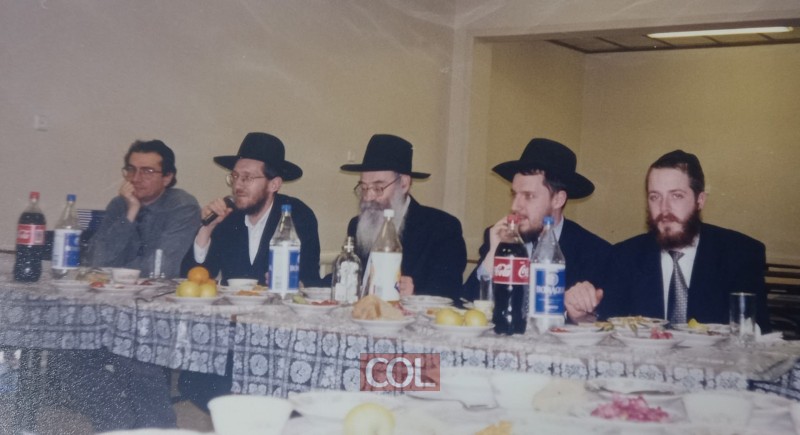 * הרב גורביץ וכותב השורות, בחגיגת סעודת ברית מילה לעשרות נימולים מבוגרים