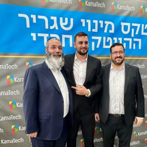 אושיית הרשת דודי קפלר מקבל מהרב שלומי פלס ומאנשי 'פיפל דיגיטל', במסגרת "טקס מינוי שגריר ההייטק החרדי", שי יוקרתי שבו הוקירו את מיזם ה"שלוחים סטורי" שעלה במדור מיוחד כאן ב-COL. צילום: שניאור שיף