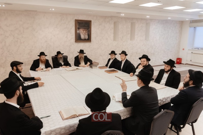 תלמידי השלוחים בישיבה הגדולה במוסקבה, בראשות מנהל הישיבה הרב יחזקאל לאזאר, וראש מכון הסמיכה הרב דוד רוזנצוויג, נבחנו אצל הדיין והמו"צ הגה"ח הרב לוי יצחק רסקין בהלכות בשר בחלב | הרב רסקין התפעל מידיעותיהם הנרחבות, ודן עמם בהלכות מעשיות העולות על שולחנו