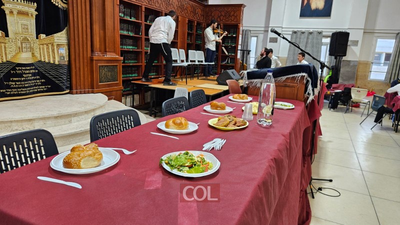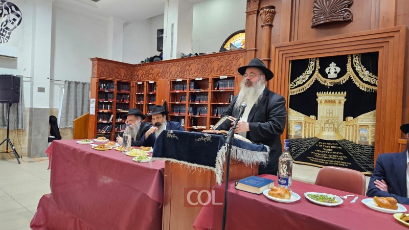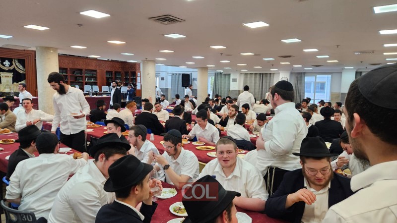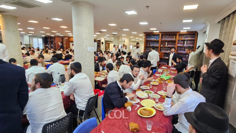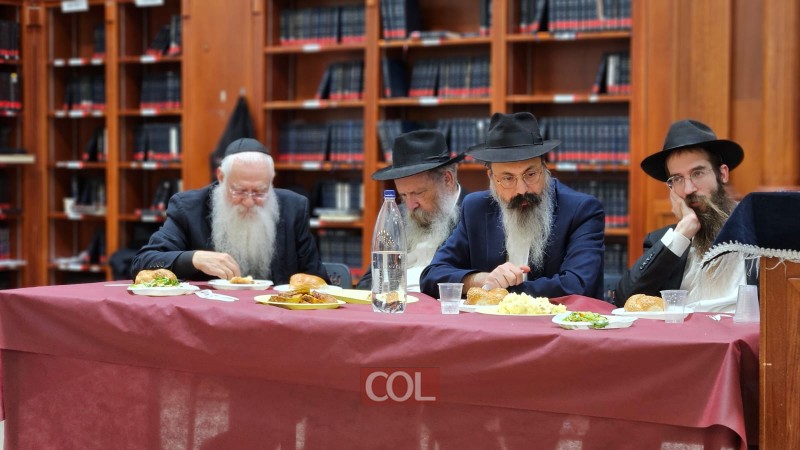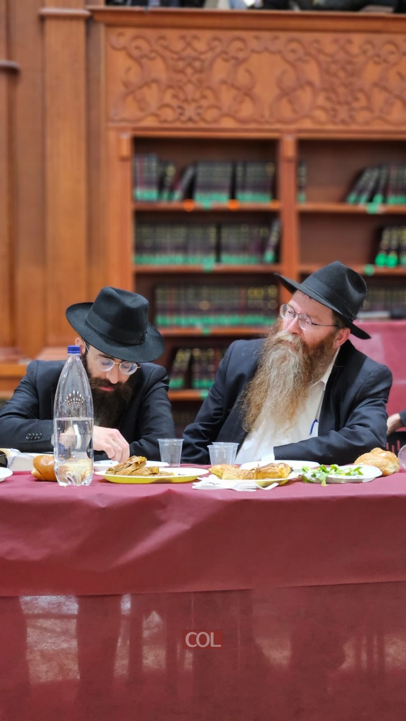 חגיגת סיום מחזור ה-45 בלימוד הרמב"ם נערכה בזאַל הישיבה סביב שולחנות ערוכים ובהשתתפות רבני הישיבה, בארגון התלמידים השלוחים