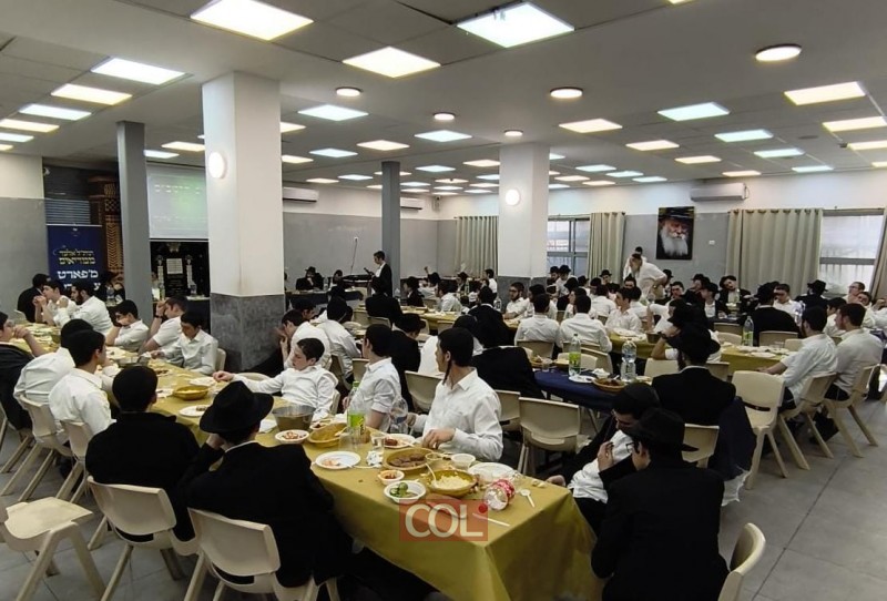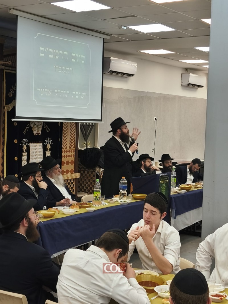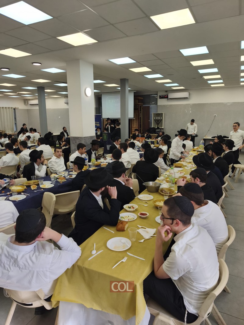סיום הרמב''ם התקיים בזאל ישיבת תות"ל אלעד, סביב שולחנות ערוכים וסעודת מצוה, בהשתתפות תלמידי התמימים וצוות הישיבה, ותחת ניצוחם של התלמידים השלוחים.