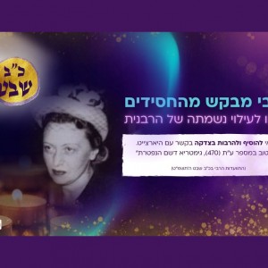 קיימו את בקשתו האישית של הרבי, תמכו לכבוד יום ההילולא במרכז לאישה היהודיה הקרוי על שמה.