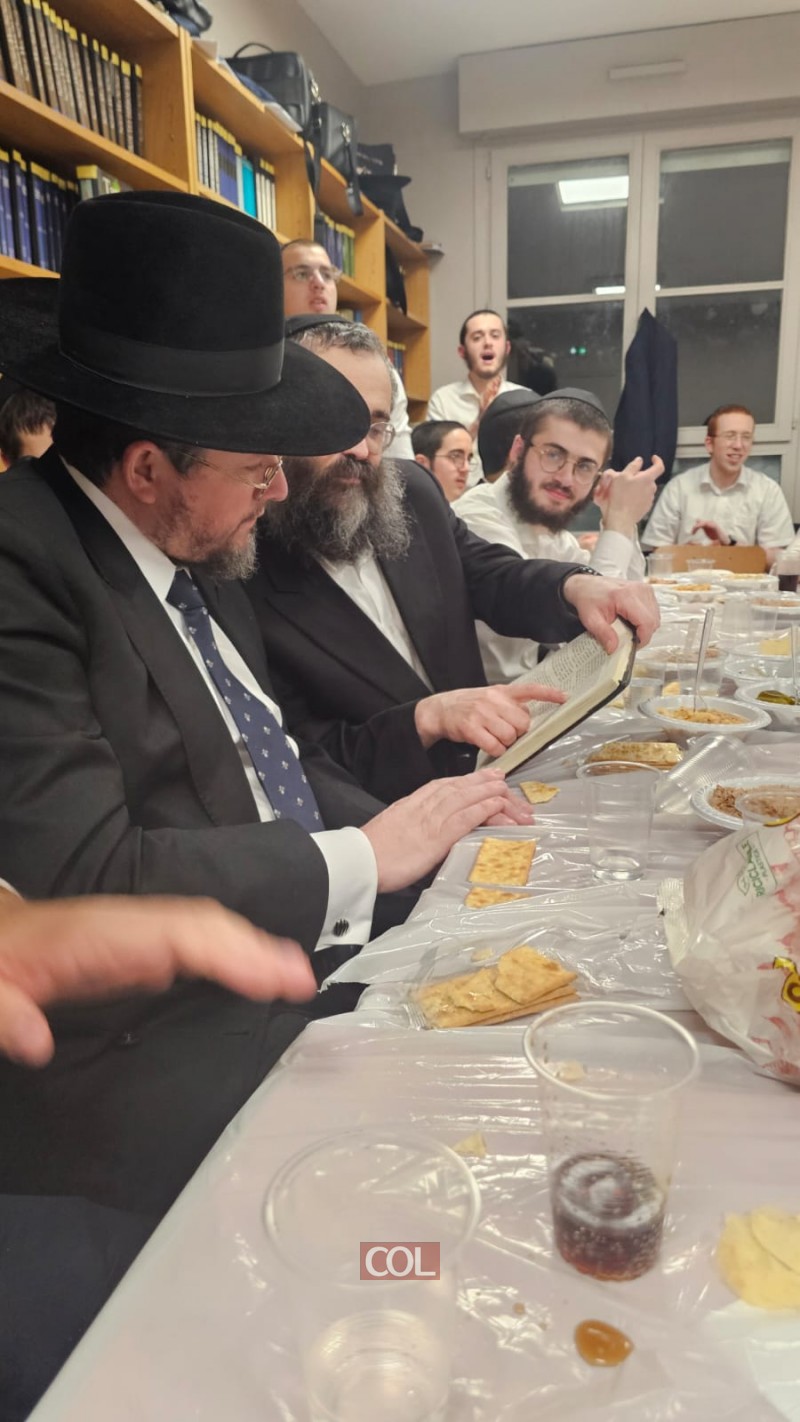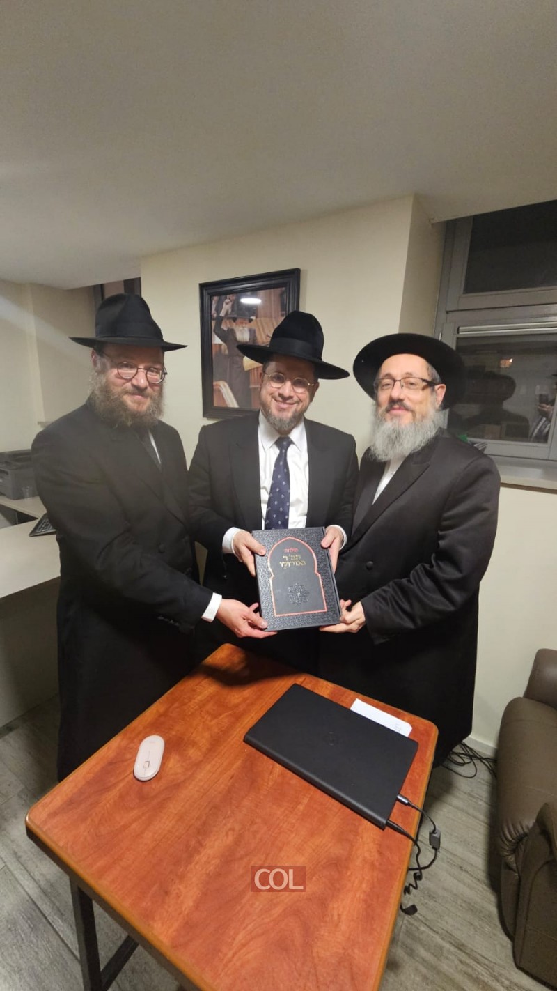 מנהל הישיבה הרב איידלמן, יחד עם הרב לוי מטוסוב שליח לאיחוד האירופאי ונכד הרב שלמה מטוסוב ע"ה שליח הרבי למרוקו, העניקו לאורח הנכבד, את הספר "תולדות חב"ד במרוקו" בעריכת החוקר החב"די הרב שניאור זלמן ברגר ובהוצאת משפחת מטוסוב.