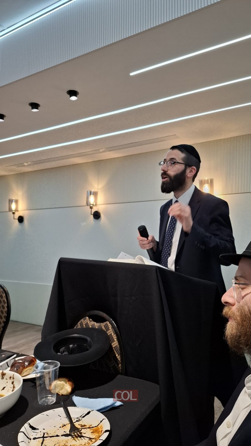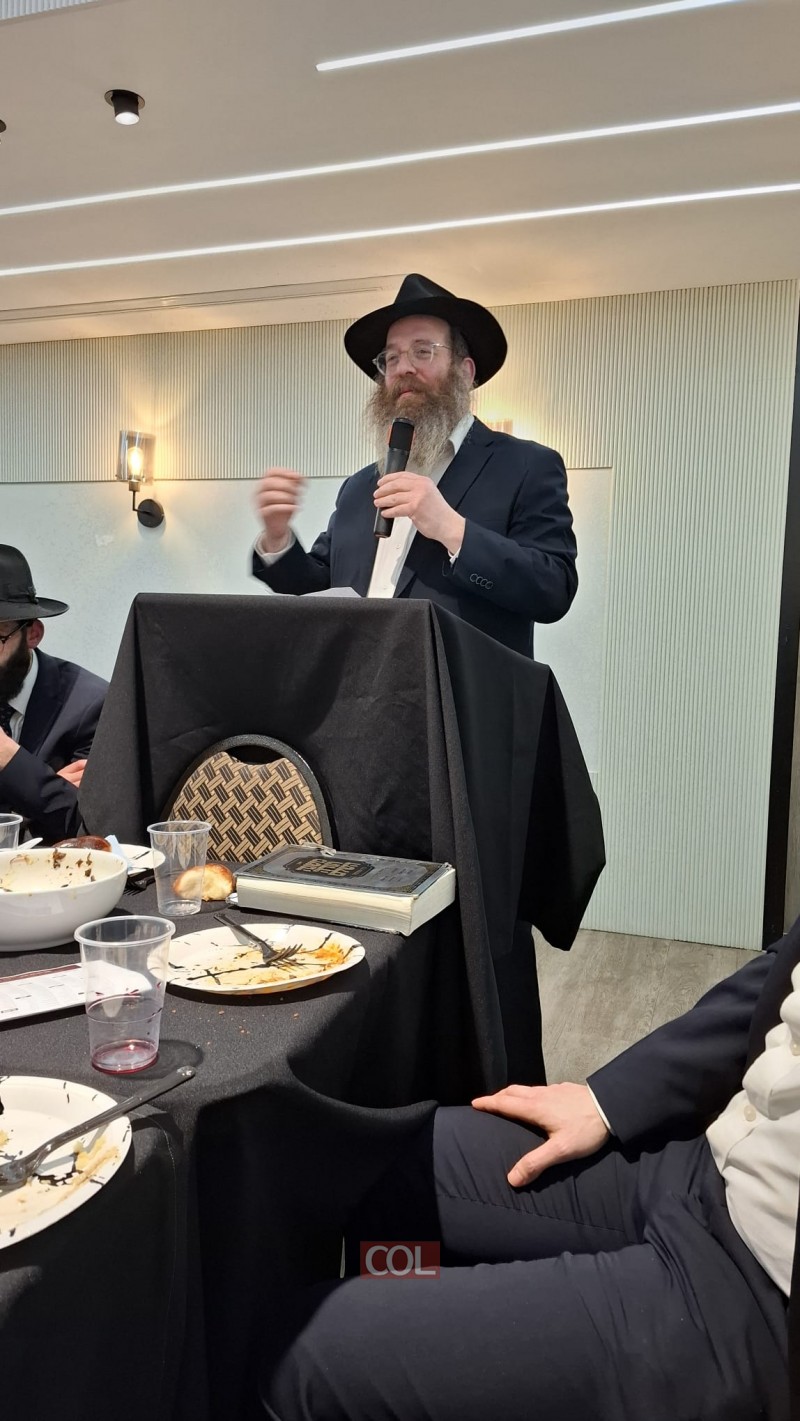 אורח הכבוד של הערב היה הרב אליעזר שניבאלג, אב"ד קהילת מחזיקי הדת באדג'וור, אנגליה. בדבריו הדגיש את חשיבותה הרבה של התמדה בלימוד תורה יומי, וכיצד היא מעניקה לא רק מסגרת ומשמעת, אלא גם שמחה וחיות רוחנית.
