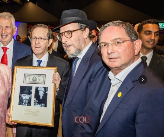 הרב לוי וולף שליח הרבי ורב בית הכנסת הגדול בסידני שבאוסטרליה העניק היום (שני) לנשיא המדינה יצחק הרצוג, ולרעייתו הגב׳ מיכל הרצוג, שטר של חמישה דולרים שקיבל באופן אישי מהרבי ביום זה ממש, כ״ב שבט תשנ״ב.