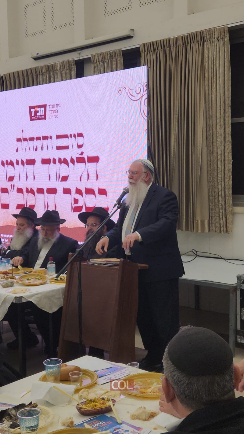 מאות בחגיגת המרכזית לסיום הרמב"ם באולם בית חב"ד המרכזי באר שבע, במעמד חשובי הרבנים ושלוחי הרבי בבאר שבע