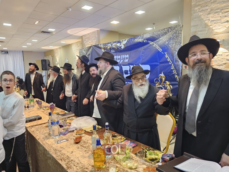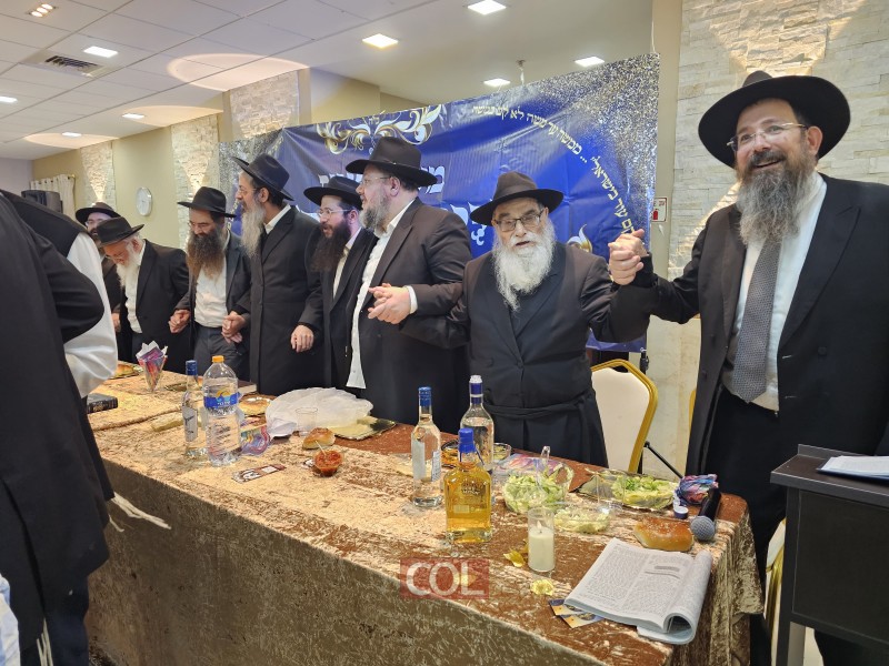 בין לבין הרימו המשתתפים כוסיות 'לחיים' כאשר על המלאכה מנצח הרב אהרון שמידט, שליח הרבי לרמת בית שמש א' ועורך 'שיחת השבוע' באנגלית, אשר נטל חלק משמעותי בארגון המעמד החשוב.