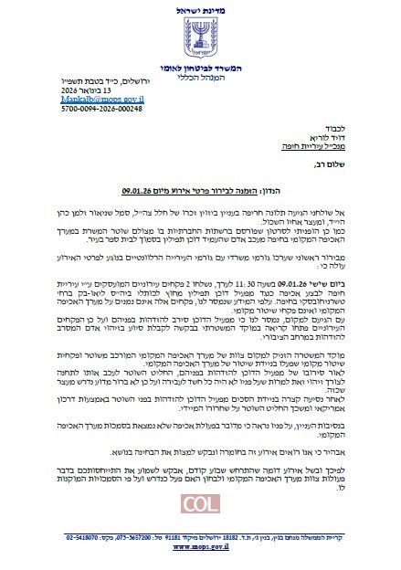 מעצר הבחור החב"די: המשרד לביטחון לאומי נגד עיריית חיפה