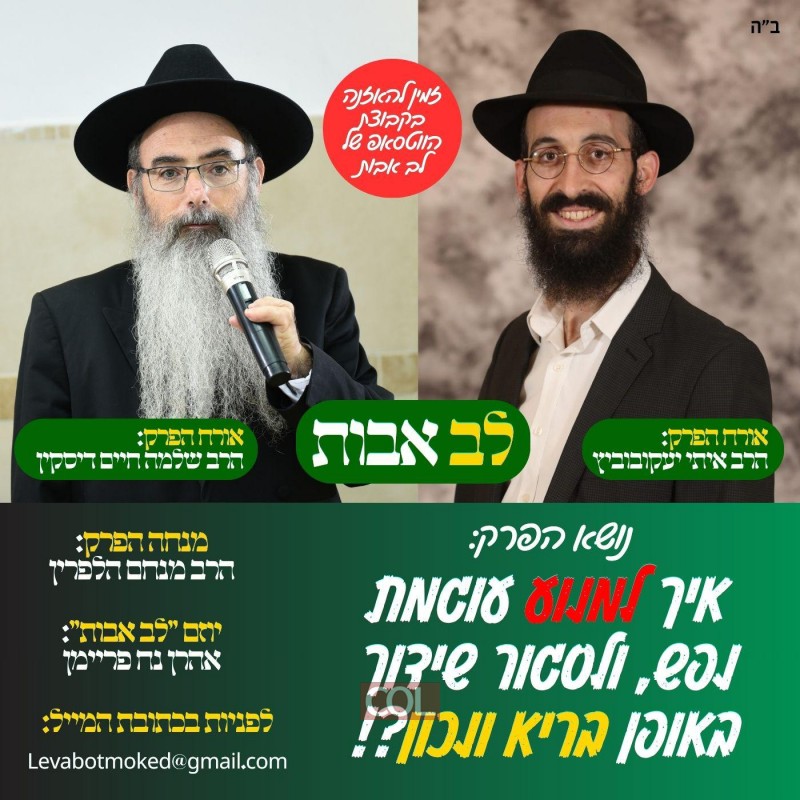 הרב חיים שלמה דיסקין שליח הרבי ורב העיר קרית אתא, וחבר בית דין רבני חב״ד, והרב איתי יעקובוביץ מדריך חתנים ויועץ בקדושה, בפרק מיוחד ישיר וכנה, על איך למנוע עוגמת נפש ולסגור שידוך נכון