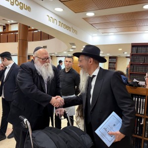 קבלת פנים חמה: שליח הרבי ורבה של רוסיה - הרב בערל לאזאר, מקבל את האורח הרב משה דיקשטיין מבאר שבע, שהגיע למוסקבה, לרגל שמחת הבר מצוה לנכדו