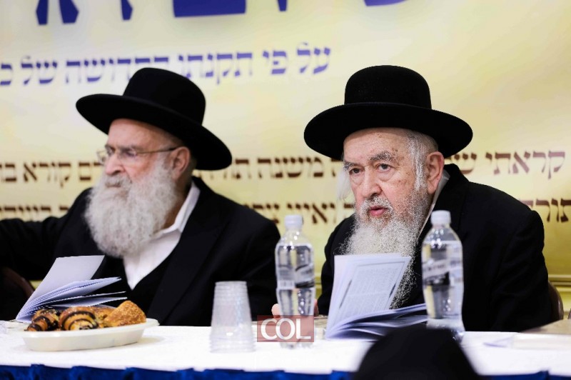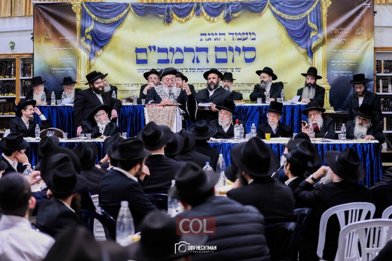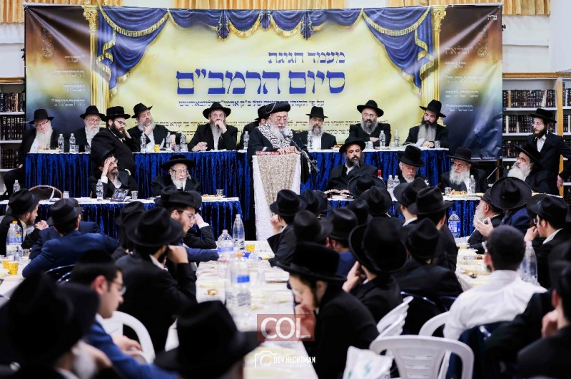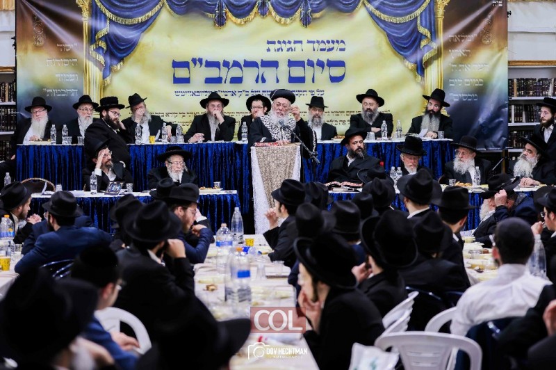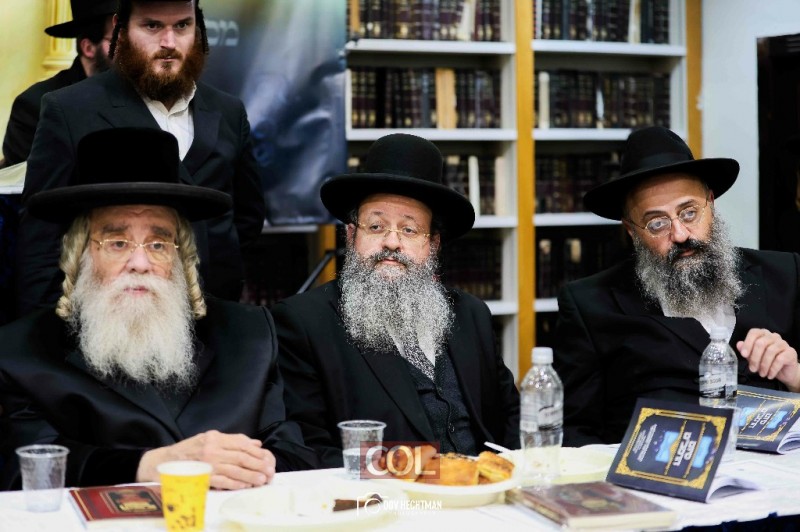 אדמו"רים ורבנים במעמד סיום הרמב"ם ב'תורת אמת' ירושלים