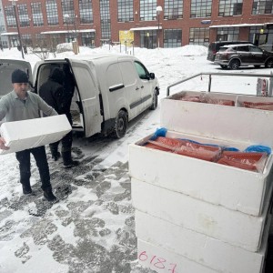 בהקפאה טבעית מהשלג: עשרות ארגזי דגי סלמון איכותיים, הגיעו הבוקר למרכז החסד היהודי 'שערי צדק' במוסקבה, לקראת חלוקת סלי "קמחא דפורייא" בחג הפורים למשפחות ברוכות ילדים ולנזקקים שונים