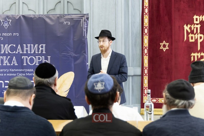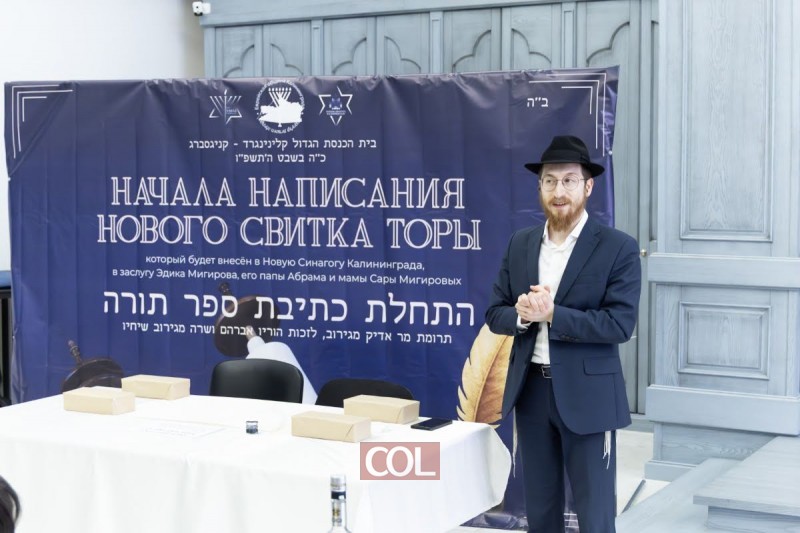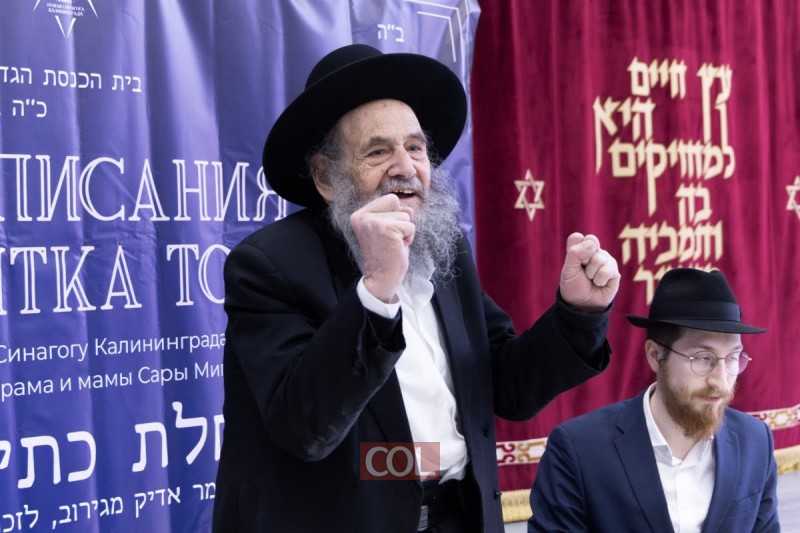 בטקס רב-רושם שנערך בהיכל בית הכנסת, כיבד השליח הרב אברהם ברוך דייטש את רב העיר הרב דוד שוועדיק, בכתיבת האות הראשונה ביריעה. יו"ר הקהילה היהודית בקלינינגרד, מר ליאוניד פליטמן, נטל אף הוא חלק בכתיבה, יחד עם חברי קהילה נרגשים, שזכו לקיים את המצווה הנדירה של כתיבת אות בספר התורה.