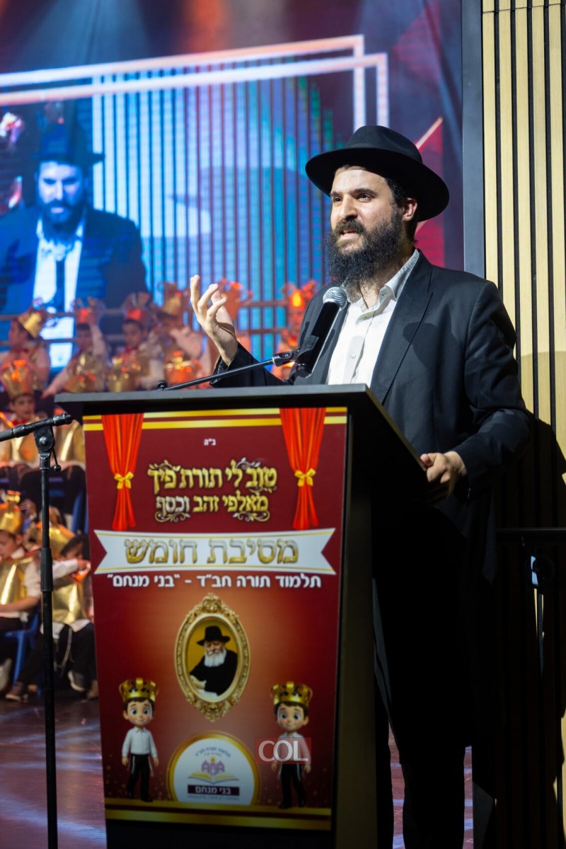 באולם המתנ"ס בקרית מלאכי נערכה בשלישי שעבר מסיבת חומש חגיגית ומרגשת עבור תלמידי כיתות א' בתלמוד תורה בני מנחם בניהולו של הרב שניאור ניסים | כ-80 תלמידי כיתות א' נרגשים, השתתפו במעמד המיוחד יחד עם האבות, האמהות, הסבים והסבתות