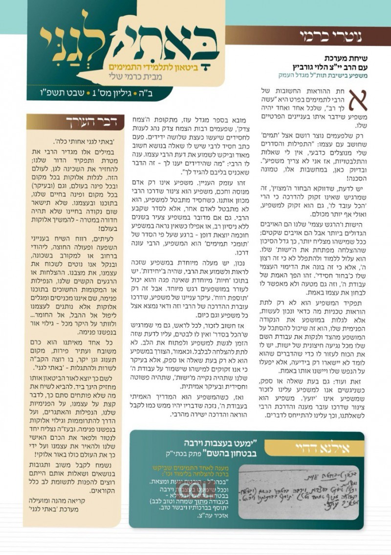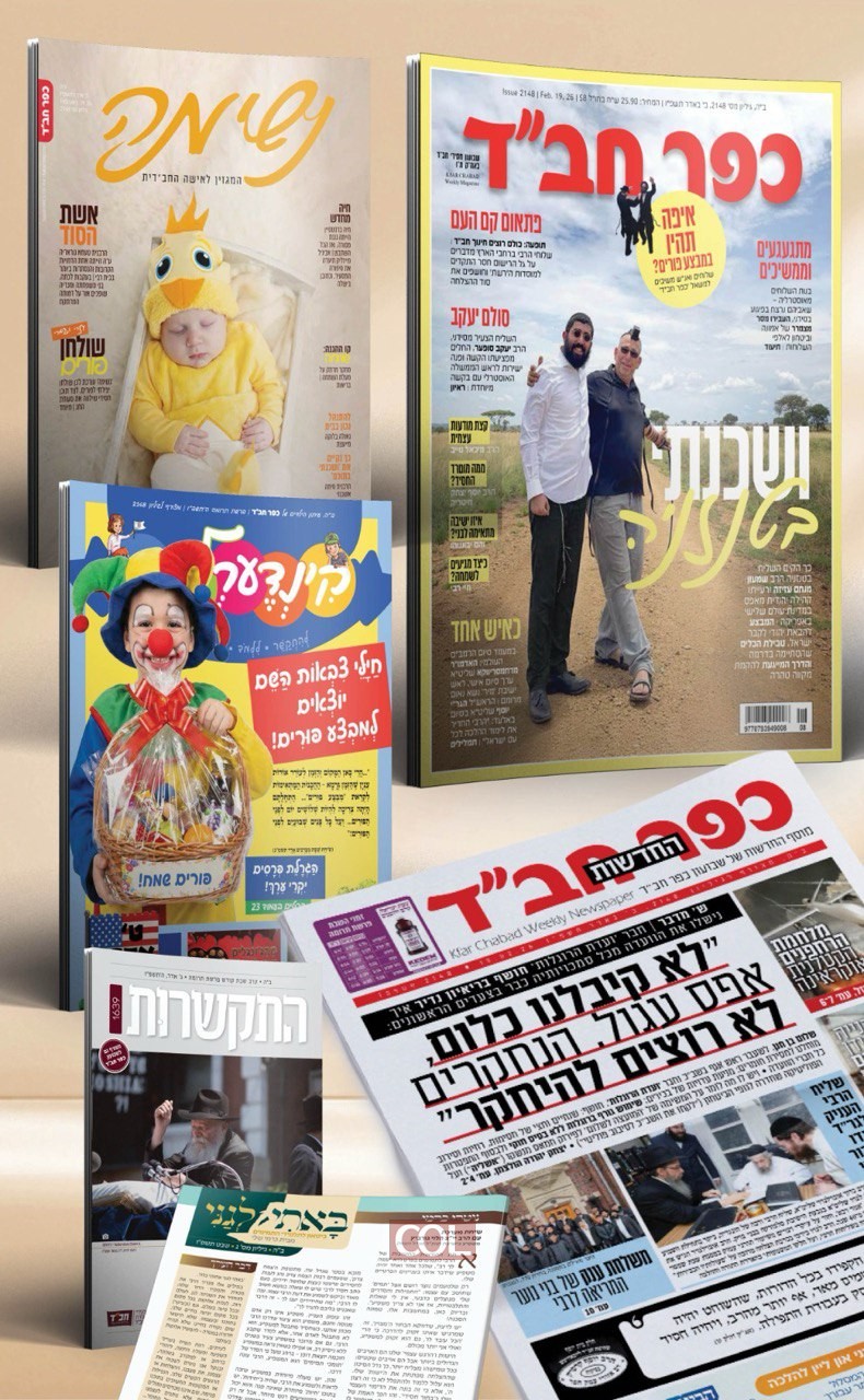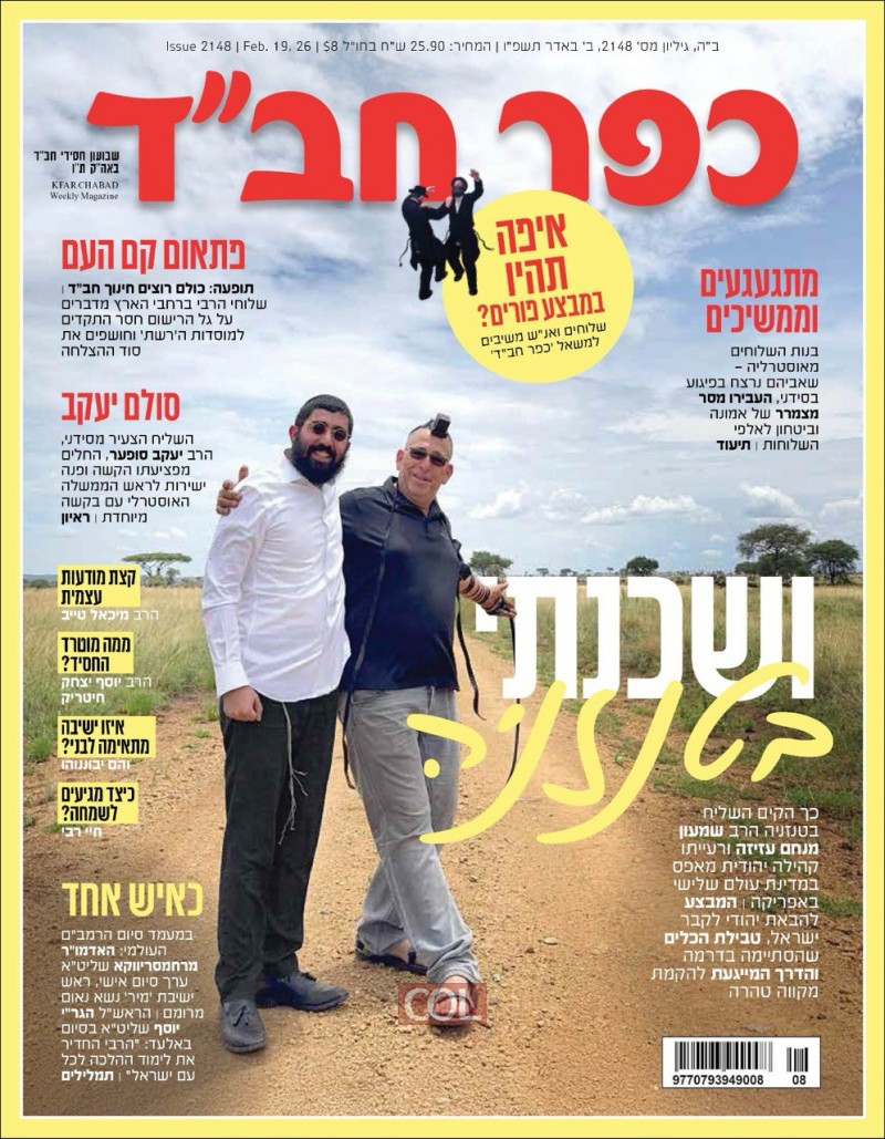 ושכנתי בטנזניה: כך הקים הרב שמעון מנחם עזיזה ורעייתו קהילה מאפס במדינה האפריקנית | השגריר בא לרבי: סיפורו המופלא של השליח הצעיר שנפצע בסידני, החלים ונסע לציון הק' מלווה בבכיר האוסטרלי | פתאום כולם רוצים חינוך חב"ד: שלוחי הרבי מכל רחבי הארץ מספרים מה קורה מאחורי הקלעים בשטח | מתגעגעות וממשיכות: בנות השלוחים מאוסטרליה שאביהם נרצח בפיגוע הנורא, העבירו מסר של חיזוק לאלפי השלוחות. תיעוד מרגש | ההכנות למבצע פורים: משאל 'כפר חב"ד' | סיומי הרמב"ם: האדמו"ר שערך סיום אישי בסיום העולמי, הנאומים המרכזיים בסיום המדובר באלעד | במוסף 'נשימה': כתבה מיוחדת על 'אשת הסוד' הרבנית טעמה גוראריה ע"ה | ב'קינדערלאך': מבצע ענק לקראת מבצע פורים | במוסף החדשות: ראיון נדיר עם בכיר השב"כ וחבר ועדת הרוגלות