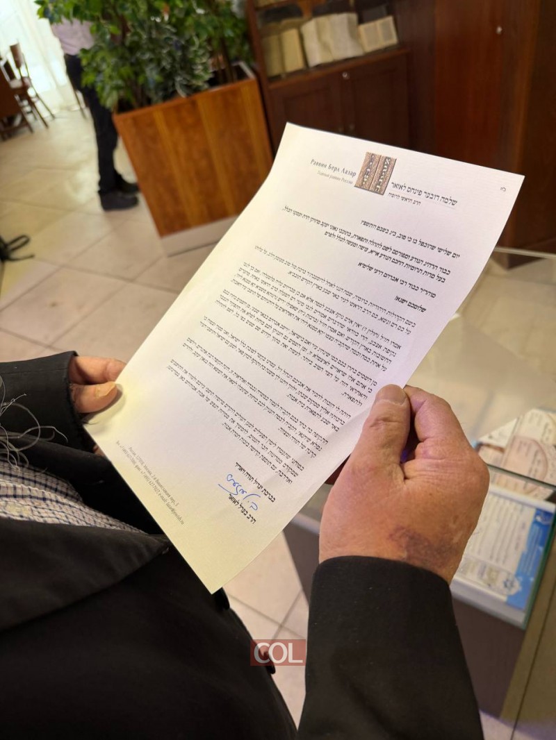 רבה של רוסיה השליח הרב בערל לאזאר שיגר אגרת ברכה לרבה הראשי החדש של באר שבע הרב אברהם דרעי. מי שהעביר את המכתב ללשכה היה הרב משה דיקשטיין, מוותיקי השלוחים בבאר שבע, שחזר משמחה משפחתית במוסקבה