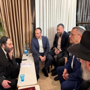 שלא תדע עוד צער: ראש עיריית ירושלים משה ליאון ונציג חב"ד בעירייה ר' יעקב הלפרין בניחום אבלים בבני ברק אצל העסקן החרדי מחסידות גור ר' מוטי בבצ'יק