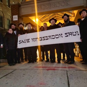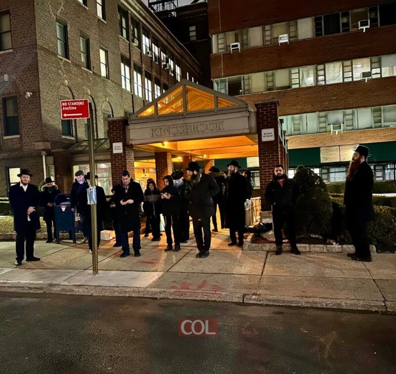 חסידי חב"ד תושבי איסט פלטבוש בברוקלין התפללו את תפילת ערבית של מוצאי שבת מחוץ לבית הרפואה קינגסברוק באזור, לציון 100 שנה להקמת בית החולים על ידי יהודים כתגובה לאנטישמיות בבתי רפואה אחרים